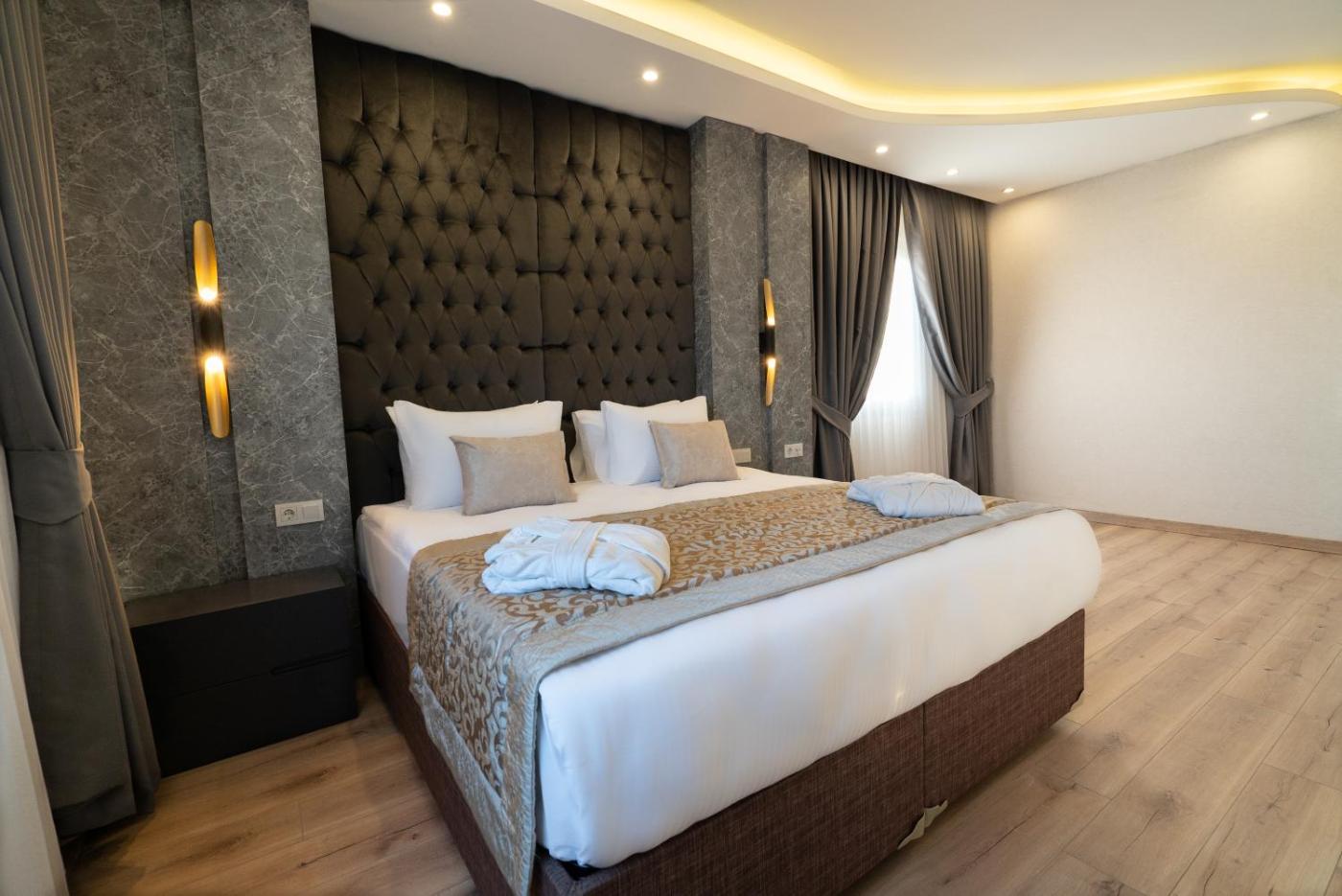 Deluxe Double Room. Featuring free toiletries and bathrobes, this double room includes a private bathroom with a walk-in shower, a bath and a hairdryer. The air-conditioned double room features a flat-screen TV with satellite channels, a minibar, a tea and coffee maker, a wardrobe as well as city views. The unit has 1 bed. ;