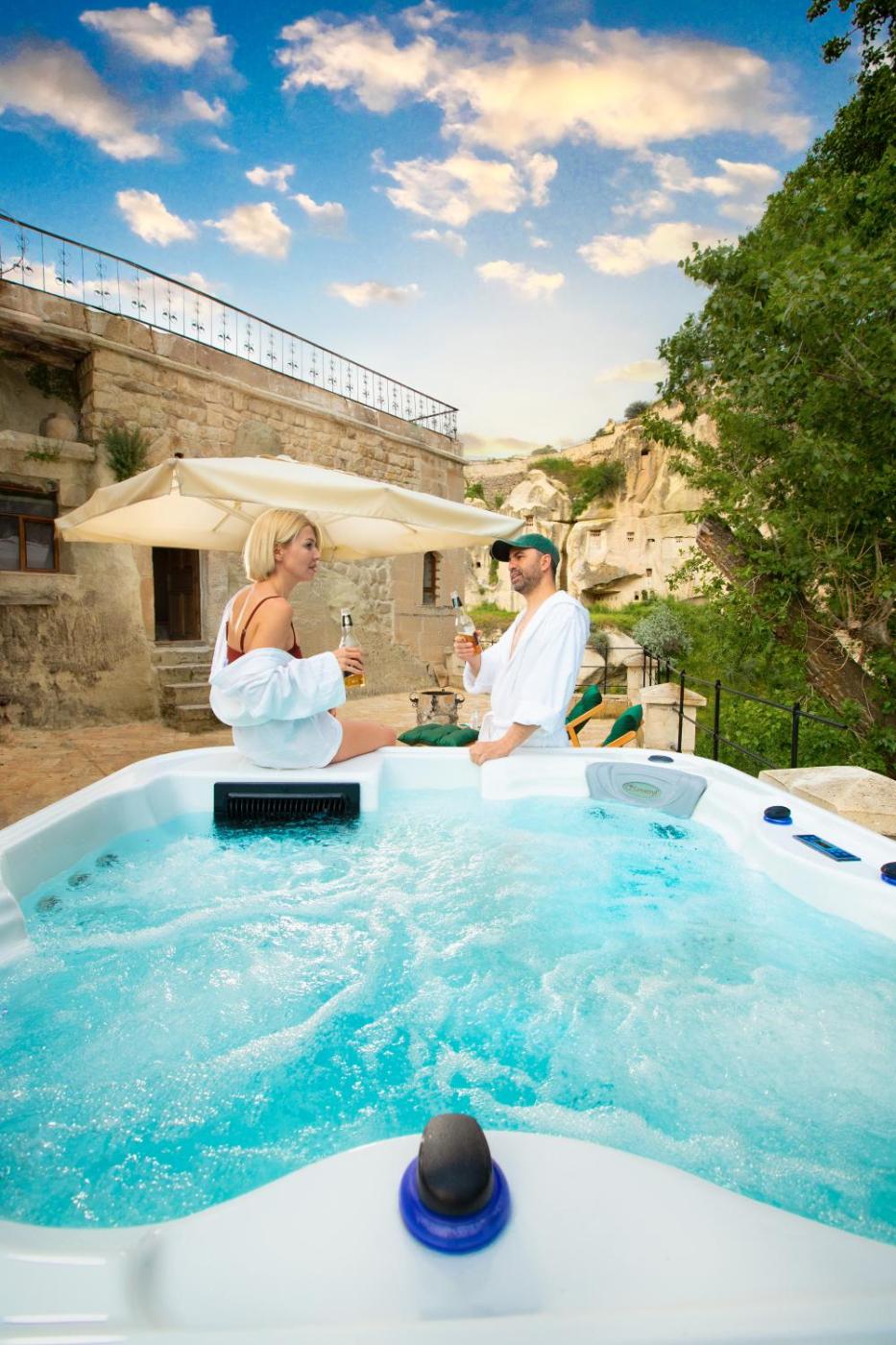 Deluxe Room. This double rooms standout features are the hot tub and fireplace. Offering free toiletries and bathrobes, this double room includes a private bathroom with a bath, a shower and a hairdryer. Boasting a terrace with garden views, this double room also offers a private entrance and a flat-screen TV with cable channels. The unit has 1 bed. ;
